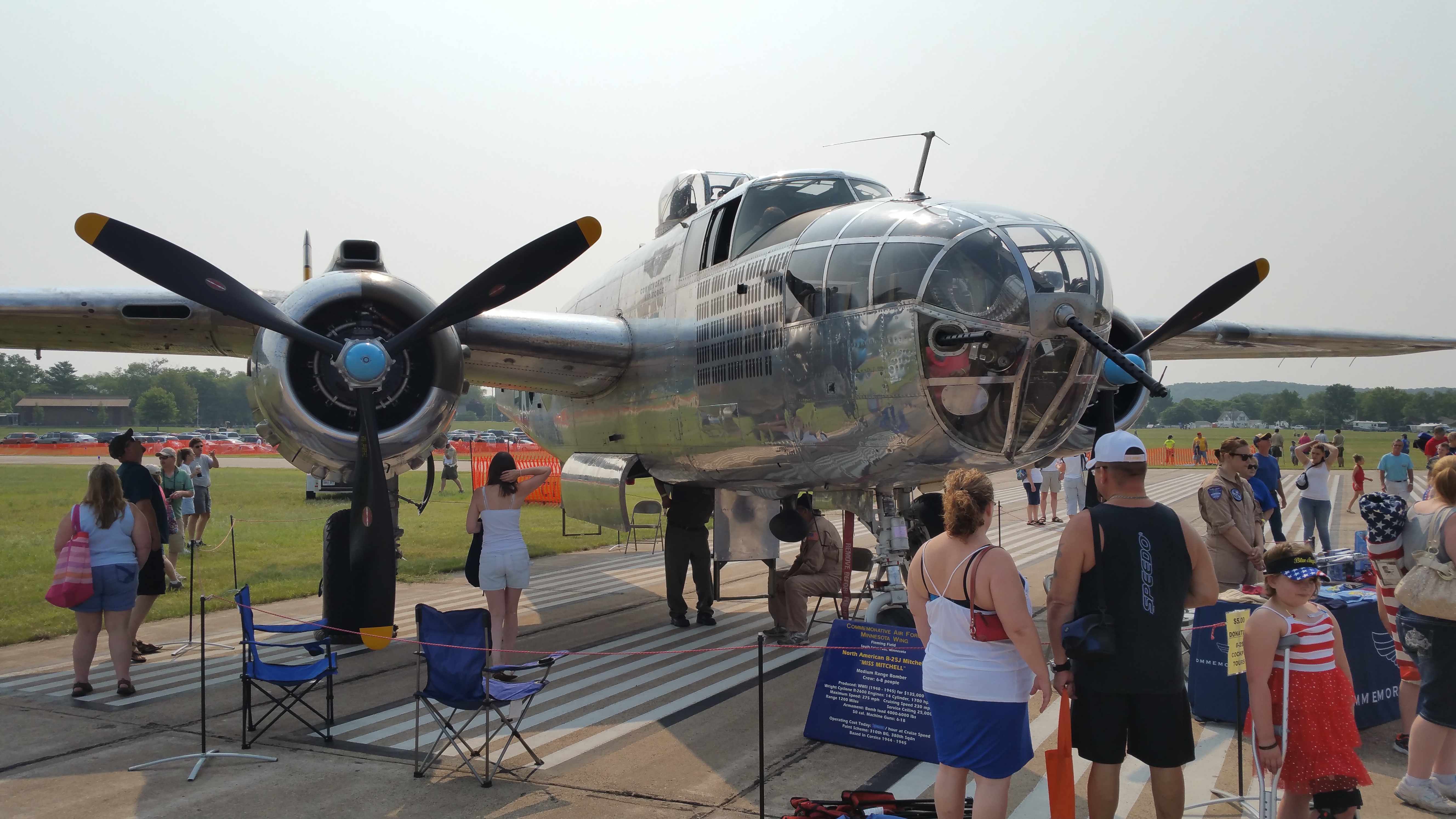 There were some vintage aircraft on display, too, including this B-25J Mitchell bomber. The Mitchell was a workhorse for the U.S. Army Air Forces in World War II, serving in Europe, North Africa and the Pacific, where it proved particularly effective not just as a medium bomber but as a ground-attack aircraft. Almost 10,000 B-25s were built, and many remained in service in other nations’ air forces as late as the 1970s.
