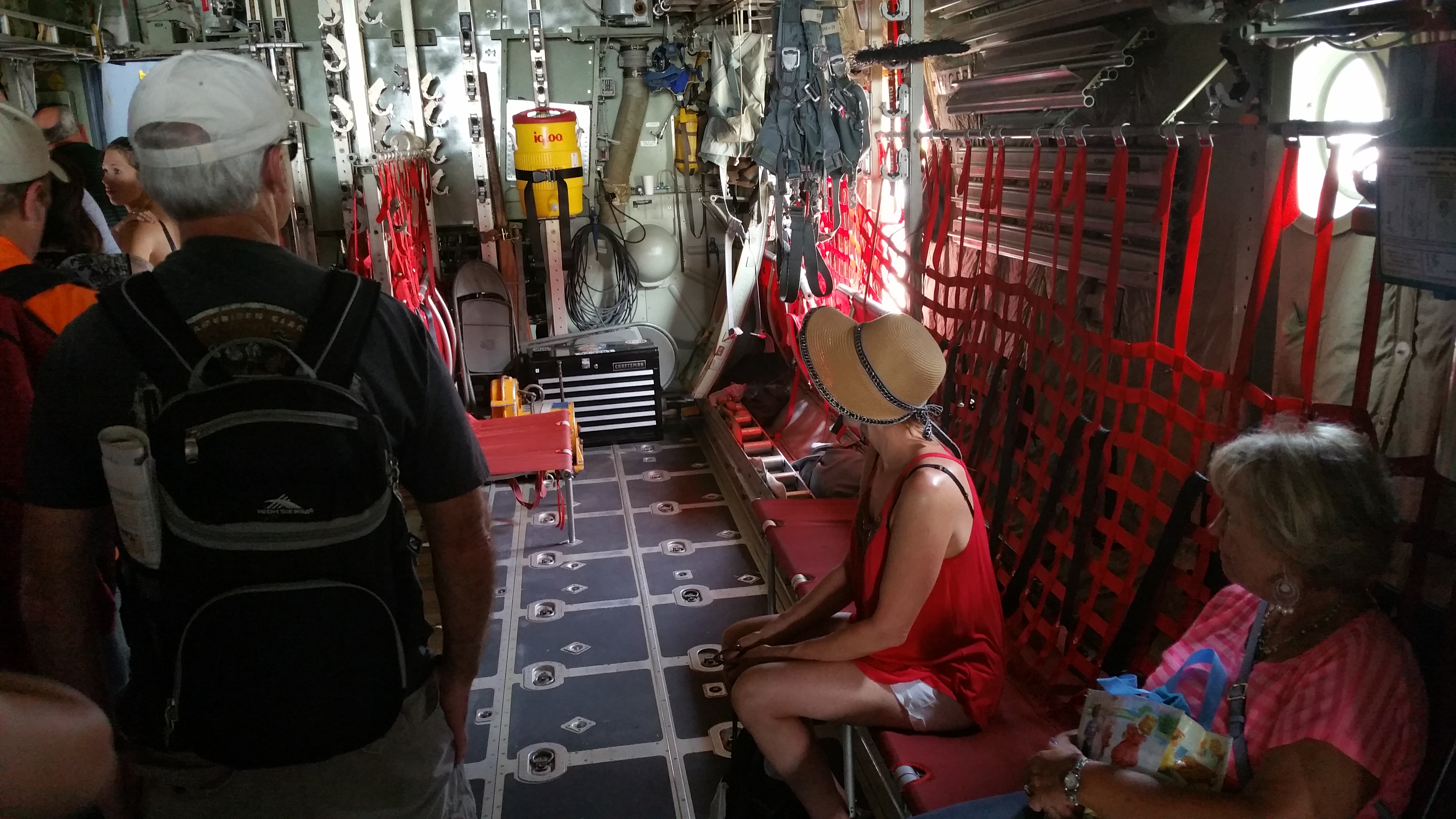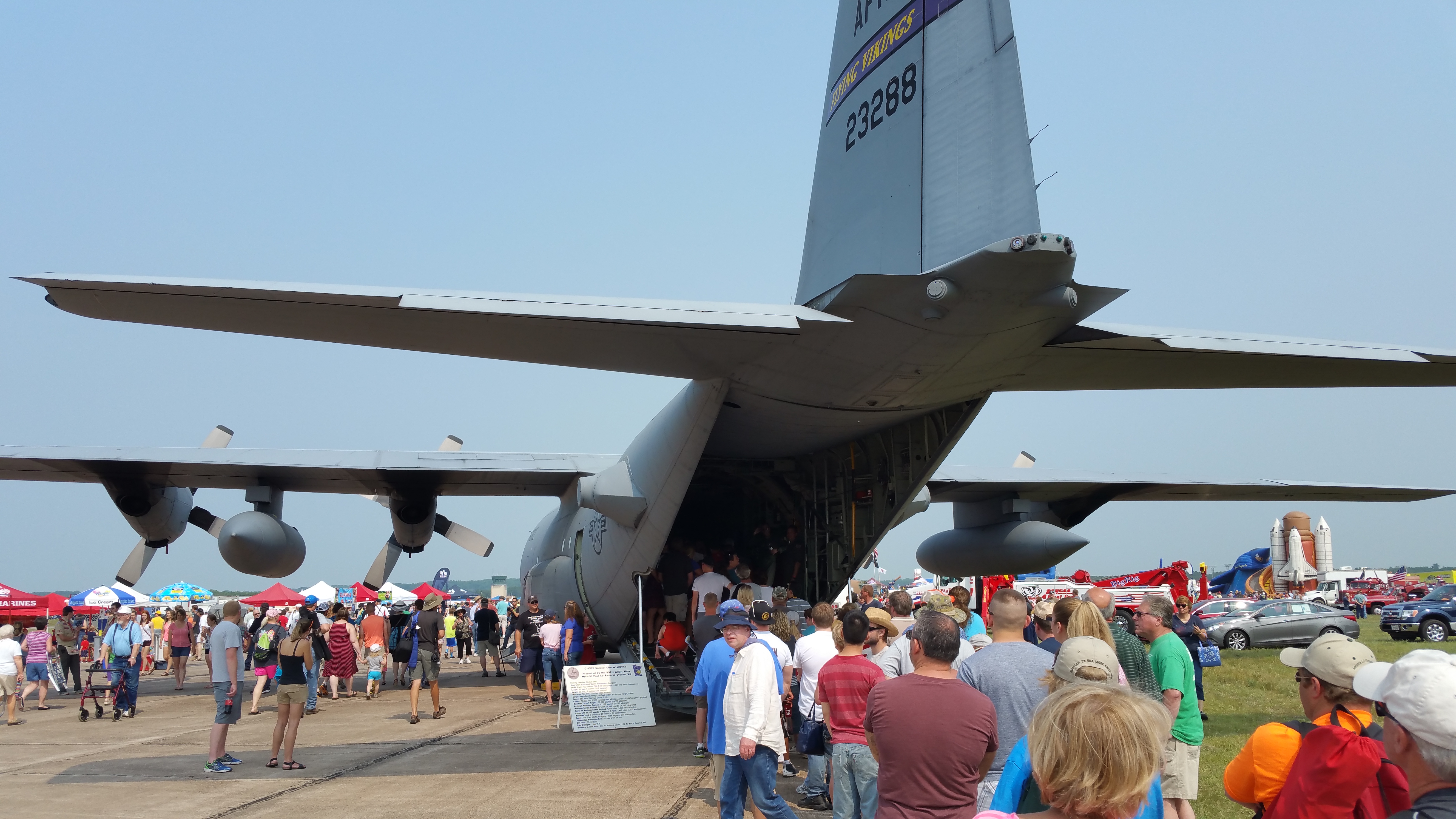The Hercules is one of the oldest-serving aircraft in the U.S. military arsenal, dating back to the 1950s when Lockheed produced an aircraft that could haul a lot of gear and/or men, travel a long ways and utilize short, often rough runways. In the Korean War, we quickly discovered that World War II-era transport aircraft would no longer do the job, and thus came the C-130. The one on display in Eau Claire was owned by the 934th Airlift Wing, an Air Force Reserve unit based in Minneapolis-St. Paul. The aircraft is nearly 98 feet long with a wingspan of 132 feet 7 inches. Powered by four turboprop engines with over 4,500 horsepower, this beast can haul a payload of 42,000 pounds with a range of 1,200 miles. When the Hercules is used as a launch platform for an airborne mission it can hold up to 64 paratroopers. It’s operated by a five-person crew and we were able to meet the crewmen, who told us they had recently returned from a deployment to the Middle East, and although the officer didn’t specify the exact location, I suspect it was somewhere in Iraq.