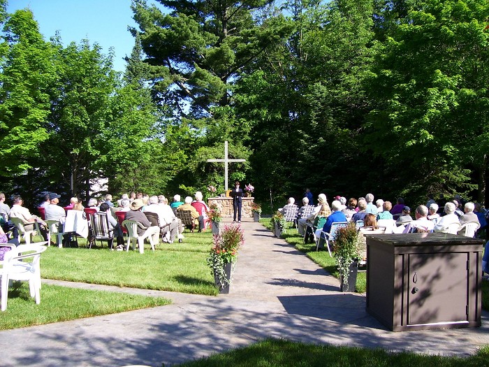 At church this morning, we were outside for the first time since July 3rd. Our church, Long Lake Lutheran, has a beautiful outdoor chapel that we utilize from Memorial Day through Labor Day. It’s also popular for weddings. Today, with Pastor Mary on vacation, five retired pastors helped out by conducting the service.