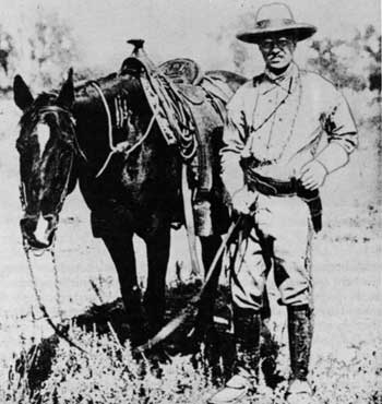 President McKinley put out a call for volunteers to serve in the liberation of Cuba, and Roosevelt was ready. The newspapers, who had been following Roosevelt since his days as a young state legislator in New York in the early 1880s, were happy to get the word out about the new regiment, to be designated the 1st U.S. Volunteer Cavalry. Roosevelt wanted to concentrate his recruiting efforts to the states and territories of the Southwest; not only were those men experienced with horses and firearms, the hot climate of the region would have prepared them for tropical Cuba. But TR’s call to arms also produced men from the East, including many from Ivy League universities (TR was a Harvard alumnus himself). A good number of these men were athletes, including Dudley Dean, quarterback of the Harvard football team, and Bob Wrenn, four-time national tennis champion.