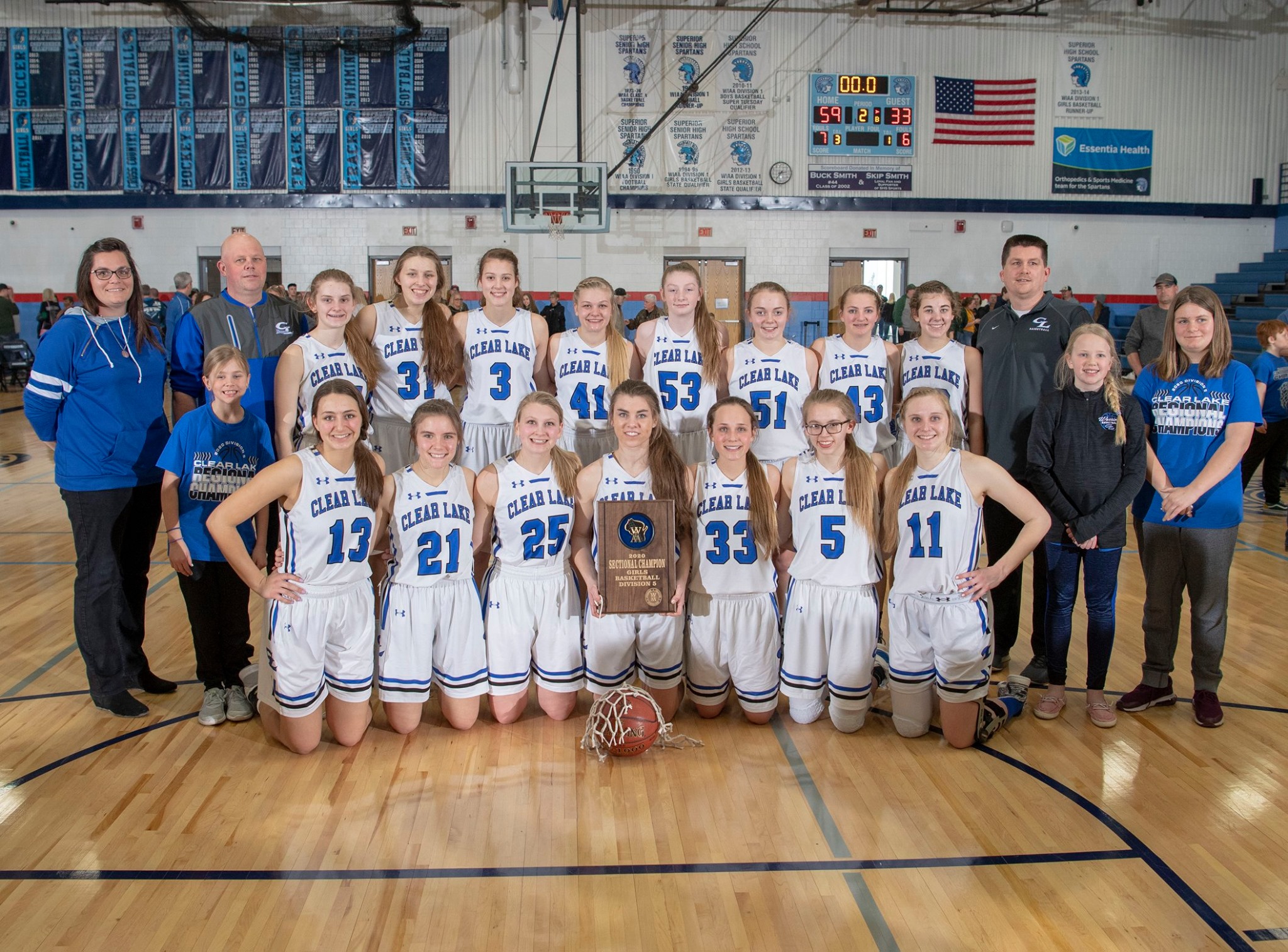 Two years later, though, he called me again. The staff was short-handed for the 2019 football season; could I help out by calling a few games? Okay, sure. That led to basketball and hockey over the winter, and in no time at all I was calling two or three games a week. It was a busy season that ended prematurely when the Wisconsin Interscholastic Athletic Association, the state’s governing body for high school sports, shut down everything late on the evening of March 12. The hockey season had ended on schedule the week before, and Rice Lake’s basketball teams were eliminated in the first rounds of their respective playoffs. I was assigned to cover the girls team from a small school in our listening area, Clear Lake, in the state finals in Green Bay. The Clear Lake girls were on the verge of an unprecedented achievement. Four months earlier, their volleyball team had finished an unbeaten season with a state title. Now, the basketball team, with many of the same girls, was also unbeaten and ready to take the floor in the same building, UW-Green Bay’s Resch Center, on the morning of the 13th in the Division 5 semifinals. Winning the state title would mean those girls had gone through not just an entire volleyball season but then a subsequent basketball season without a loss. Nobody had done that in the 40-plus years since the state had sanctioned playoffs in girls sports.