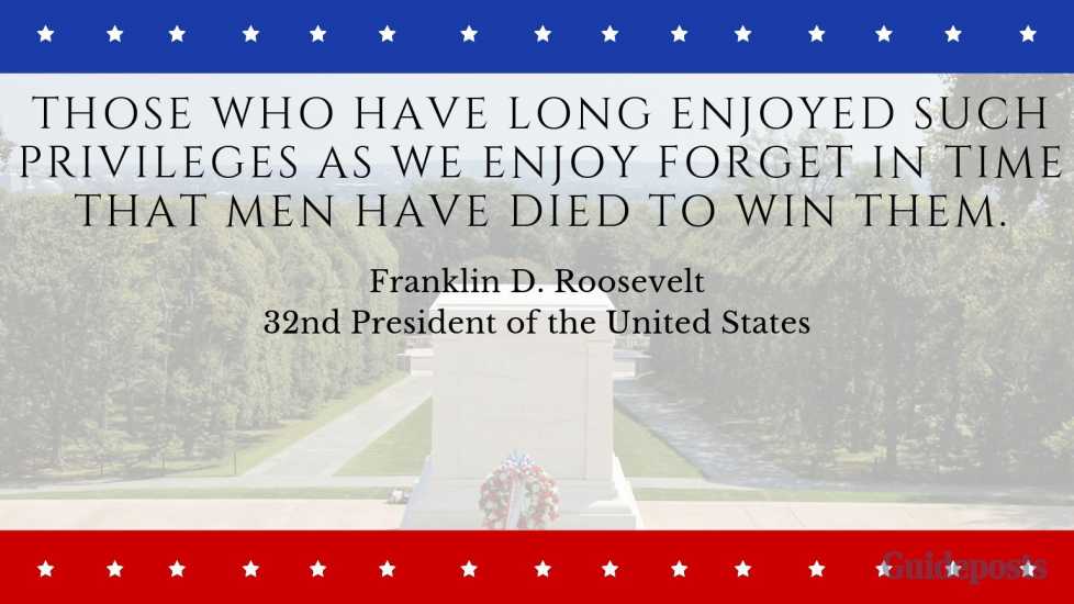 I looked up the casualty figures for all of America’s wars. Since the first shots were fired in the Revolution back in 1775 at Lexington and Concord in Massachusetts, over 1.3 million of our fellow citizens have made the ultimate sacrifice. This number doesn’t include the many thousands who have perished during peacetime as a result of training accidents or illness. But even if we only look at those on the official casualty rolls, the number is staggering. Let’s put it in perspective: if each of those fallen were to walk in front of us and spend just a minute telling us about himself, where he was from and where he fell, it would take nearly a thousand days for all of them to tell us their stories.
