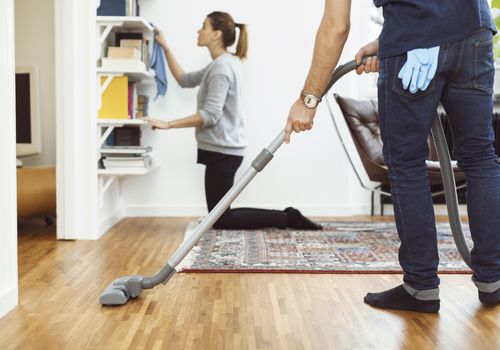 How much housework should a husband do? When I was growing up, my parents had clearly-delineated areas of authority. My mother was in charge of keeping the interior of the house clean and neat, and my dad handled the exterior, which included the yard. He was also the one who had to keep the garage and the basement in some measure of order. Dad also kept the family’s cars clean and serviced. As our family grew, Dad got a break because Mom bore him three boys, who all had to pitch in with “guy chores” as we got older. I started mowing the lawn at age 8, for example. If one or two of us had turned out to be girls, undoubtedly they would have been drafted into the indoor cleaning brigade. But Mom soldiered nobly on, occasionally asking us to help out with things like dusting, vacuuming and washing dishes. And we knew better than to say no to those requests, because if we did, Dad would quickly get involved, and we knew whose side he’d be taking.