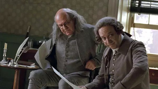 I also noted that HBO was running the 2008 miniseries John Adams, in which our 2nd president is played, and played well, by Paul Giamatti. The 7-episode series won 13 Emmy awards, with 10 other nominations. Giamatti won for lead actor, and his co-star Laura Linney won for lead actress. Linney played Adams’ wife, Abigail, a very influential figure in her own right. I’ve seen the series a few times and was always struck by the drama around the deliberations of the Continental Congress in 1776 as Adams, Benjamin Franklin, Thomas Jefferson and other titans of American history grapple with the momentous issue before them: submit to Great Britain, or fight for independence?