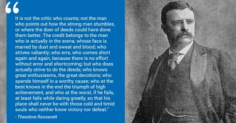 One of my father’s greatest lessons was this: You’ve got to be willing to roll up your sleeves and get the job done. It’s easy to sit on the sidelines and tell someone else how to do the work, but it’s another thing entirely to actually do the work that must be done. And there will always be work that needs doing. In that way, my father was not at all unlike my favorite president, Theodore Roosevelt. I don’t recall Dad ever talking about TR, who died 16 years before my father was born, but somewhere along the line, Dad must have read this: