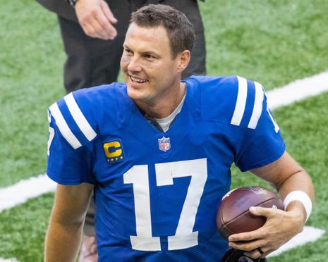 Although he never played on a Super Bowl champion, Rivers had a stellar career by any measure. He finished among the league’s all-time best in several passing statistics. He’s sixth in career touchdown passes, behind two current Hall of Famers (Peyton Manning, Brett Favre) and three others who’ll be in the Hall someday (Aaron Rodgers, Drew Brees and the number-1 guy, Tom Brady). He’s 7th on the passing yardage list, behind those five guys and Steelers great Ben Roethlisberger, whom Rivers might just catch this season, being only 648 yards behind. Rivers also made a lot of money, as star quarterbacks always do; in his only season with the Colts, he earned $25 million. And now, he’s back.